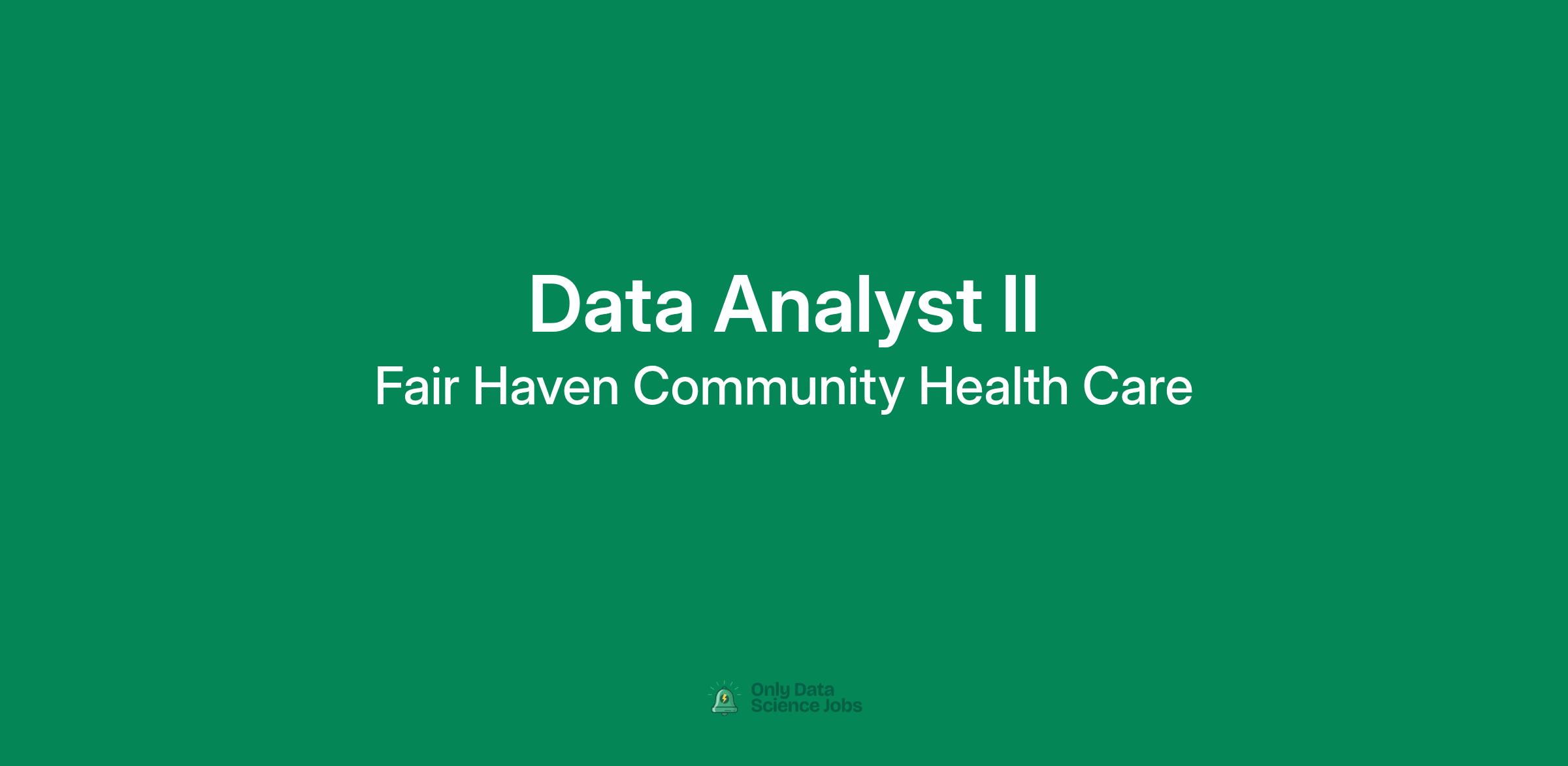 The Data Analyst II is responsible for gathering, organizing, analyzing and presenting data. The responsibilities include extracting data, maintaining databases and creating reports. The role also identifies trends and patterns in data sets and provides meaningful insights to inform and impact important business decisions that advance the mission of Fair Haven Community Health Care (FHCHC).
