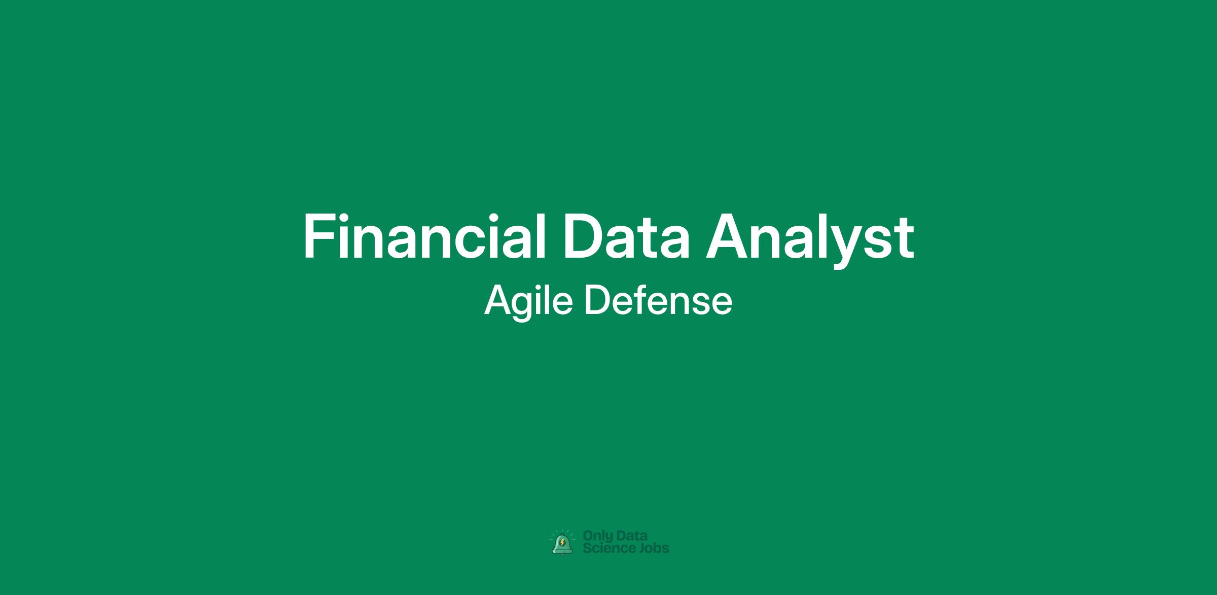 Agile Defense is an award-winning and growing company with an immediate need for a skilled and energetic Financial Data Analyst to support US Marshals Service with financial analysis and reporting.